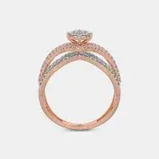 A romantic and elegant ring designed to symbolize an unbreakable bond. Crafted in lustrous 18K rose gold, it features a stunning central diamond surrounded by a halo of smaller pavé-set diamonds. The band itself is a masterpiece of design, with multiple strands elegantly twisting and interlocking around the center stone, creating a dynamic and sophisticated look. This piece is perfect for engagement or as a special gift, representing love that is intertwined and everlasting. While listed as a set for two, this single ring captures the essence of the interlocking design.