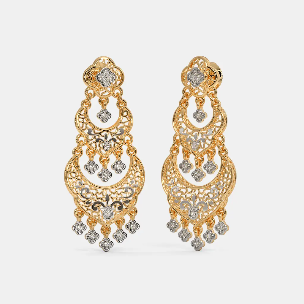 The Catori Chandbali Earrings are beautifully designed in 18Kt gold with a graceful crescent shape. They are decorated with 30 sparkling diamonds that add a touch of shine and elegance. Lightweight yet stylish, these earrings are perfect for weddings, festivals, and special occasions.